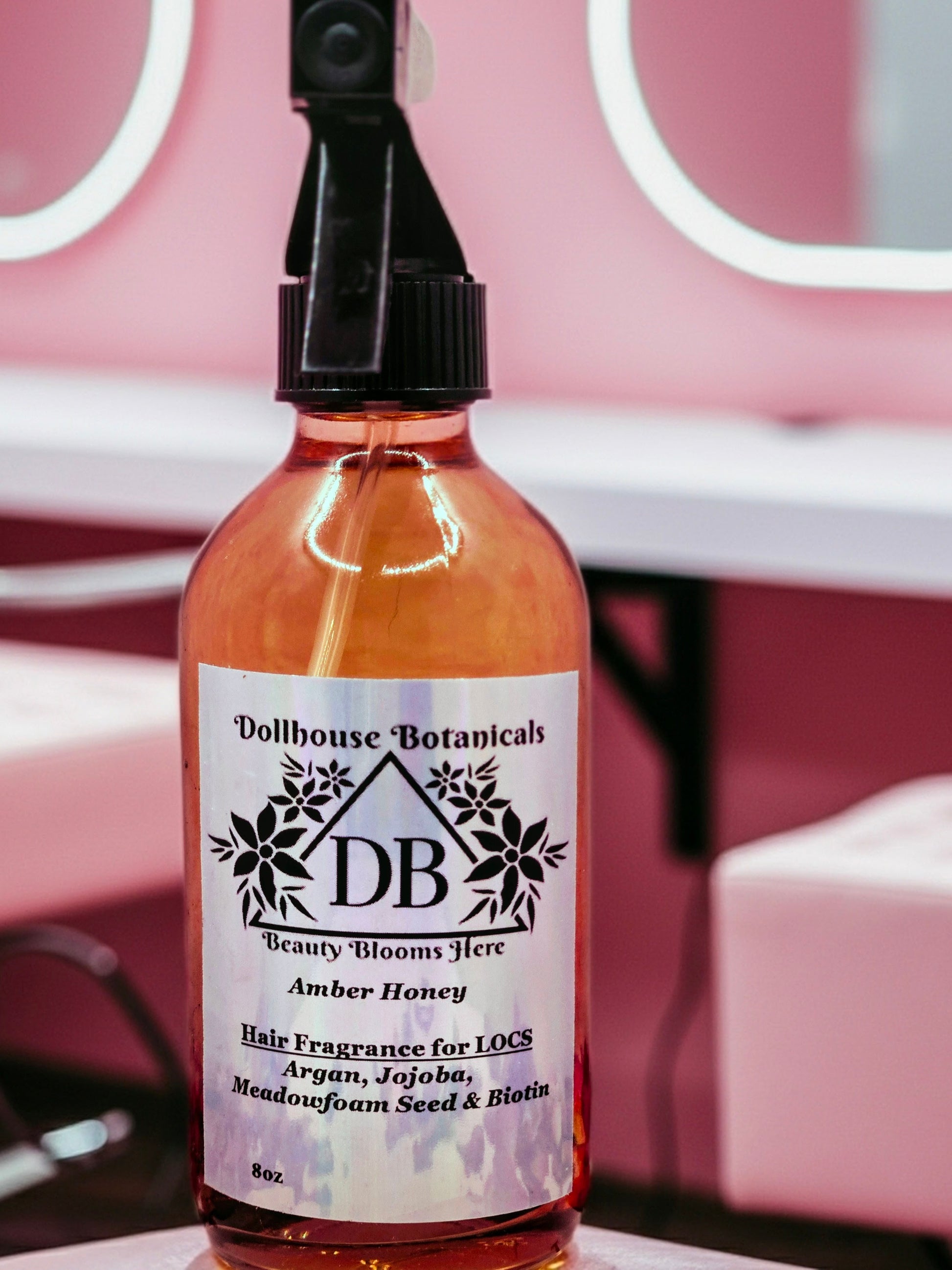 Amber Honey Hair Fragrance for Locs is a hydrating loc oil scent, crafted to keep scalp and locs deeply nourished, repair, strengthen, and protect from damage, balance scalp sebum, enhance loc texture, promote growth, and prevent buildup and damage while adding a long-lasting touch of aromatic luxury to loc'd hairstyles.