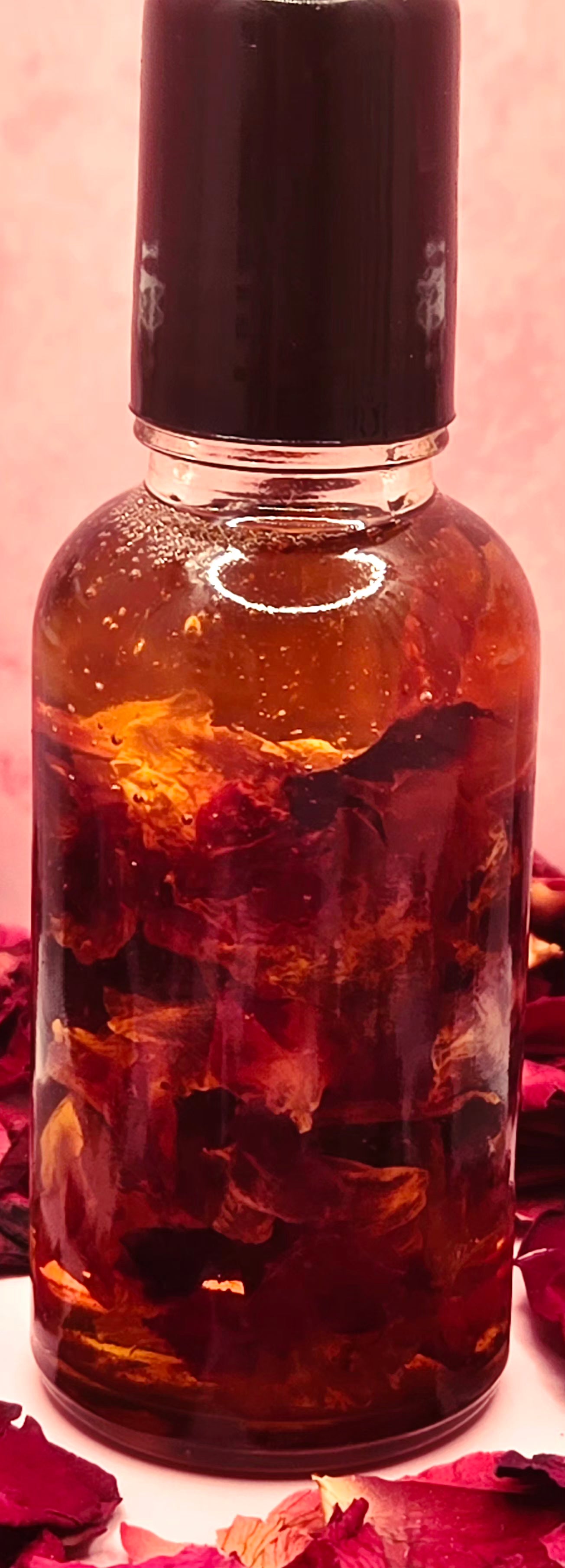 Ingredients: Jojoba (Simmondsia chinensis), Rose EO (Rosa damascena), Coconut (Cocos nucifera), Sea buckthorn (Hippophae rhamnoides), Vitamin E (tocopherol), floating rose petals