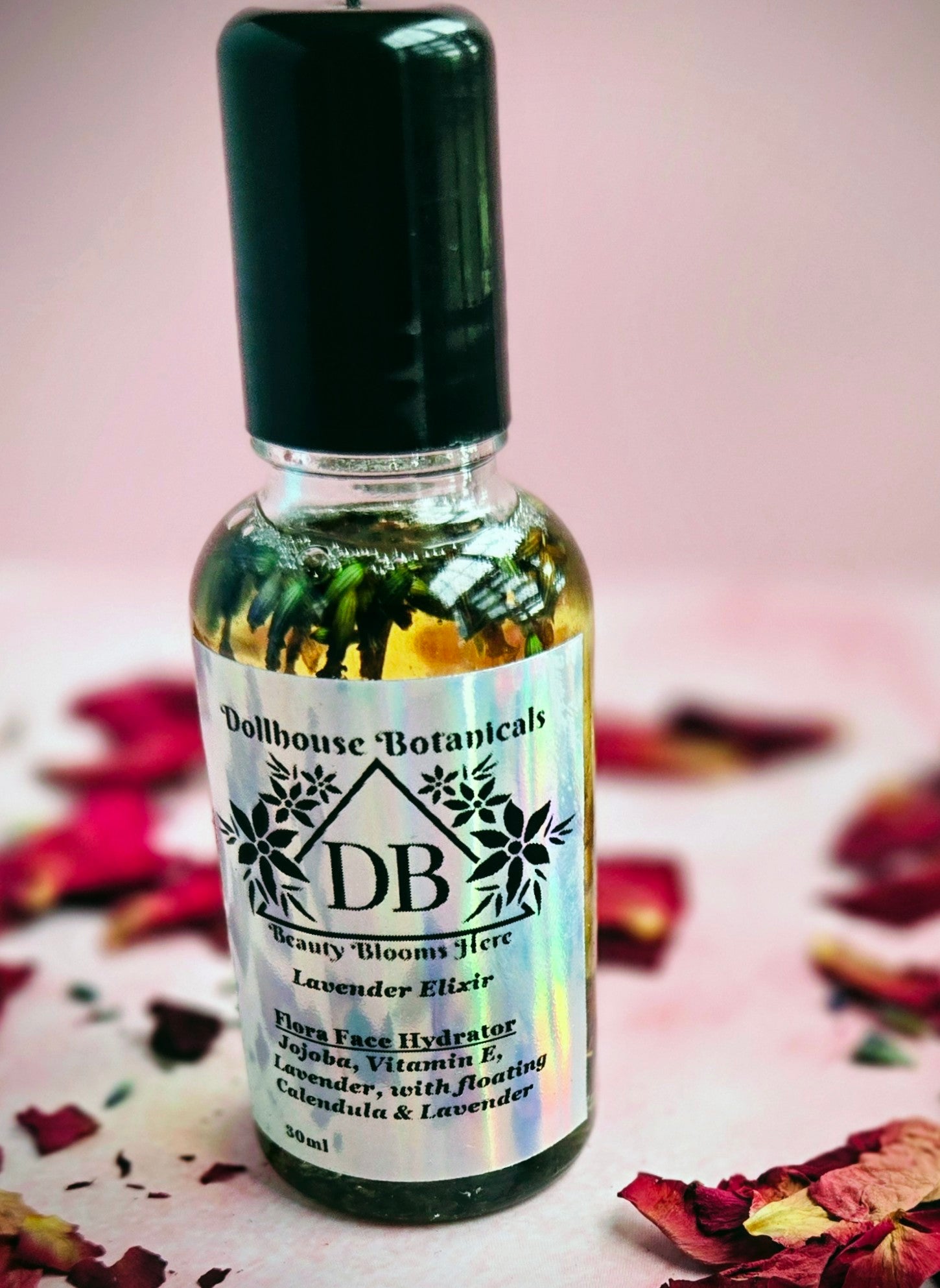 Lavender Elixir is a botanical face hydrator crafted with jojoba, vitamin e, and soothing lavender. Infused with floating lavender, this lightweight oil deeply nourishes, restores radiance, and transforms your skincare routine into a ritual of calm serenity.